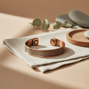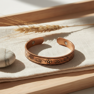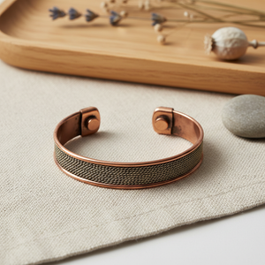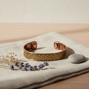 Koper is een roodachtig metaal met een haast lichtgevende glans. Vanwege zijn schitterende eigenschappen verbinden mensen koper vaak met kunst, schoonheid en de godin Venus. De meeste mensen dragen het rode metaal als herinnering aan het hart of om meer moed te voelen. Ook staat koper voor aantrekkingskracht op allerlei gebieden. Het werkt volgens sommige mensen als natuurlijke conductor. Dat betekent dat het energie zou geleiden en vergroten.Op die manier ondersteunt het volgens velen bij de natuurlijke genezingsprocessen van het lichaam. In de Ayurveda wordt koper gezien als materiaal met gezondheidseigenschappen, bijvoorbeeld om Drinkflessen en Tongschrapers van te maken.