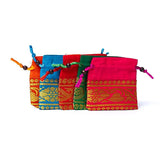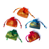 Vijf brokaatzakjes om een pendel of ander klein voorwerp in op te bergen.