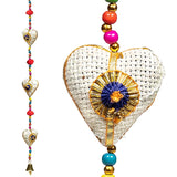 Kleurrijke slinger met 5 hartjes en een speels belletje aan het uiteinde. Leuk ter decoratie op de kinderkamer of elders in huis.
