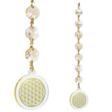 Deze hanger bestaat uit zeven kleine champagnekleurige octagon kristallen die de 7 chakra's symboliseren en een in epoxy hars gegoten bloem des levens. Wanneer u deze in het raam ophangt, tovert het zonlicht magisch licht door de hele kamer!