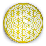 Magneetje met goudkleurige Bloem des Levens, ter decoratie op een koelkast, vaatwasser, archiefkast of magneetbord.