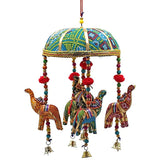 Kleurrijk en speels mobiel met 5 olifanten en belletjes aan de uiteinden. Een feestje voor op de kinderkamer of ter decoratie elders in huis.