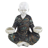Monnikje Met 2 Waxinelichthouders Wit Polyresin 19 x 12 x 22 cm