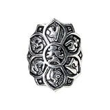 Deze zilverkleurige ring draagt een subtiele lotus, een bloem vol betekenis. De verstelbare ring nodigt je uit om tijdens een ritueel moment rust te vinden en aandacht voor jezelf te creëren.