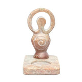 Ontdek de rustige schoonheid van dit gestileerde godinnenbeeld, gemaakt van natuurlijke zeepsteen in een zachte, lichte tint. In de voet is een waxinelichthouder verwerkt, die een warme, sfeervolle gloed verspreidt en uitnodigt tot een moment van verstilling.